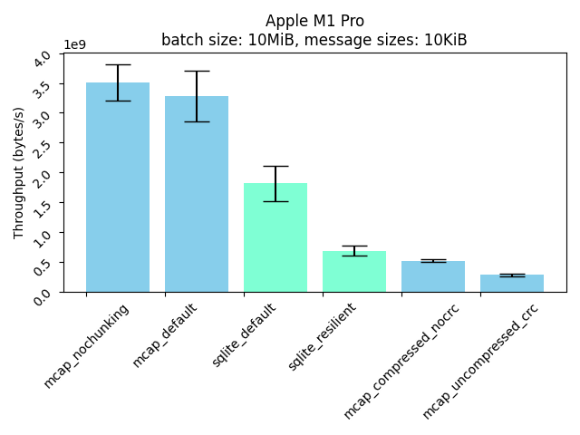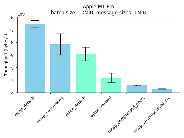 - MCAP either performs on-par with or significantly better than the SQLite storage plugin in their default configurations. It's also worth noting that in their default configurations, MCAP can offer better corruption resilience than the SQLite storage plugin as well.